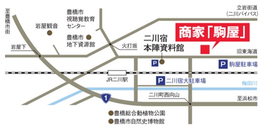 ※専用駐車場は東へ80m。大型バスは二川宿大駐車場をご利用ください。